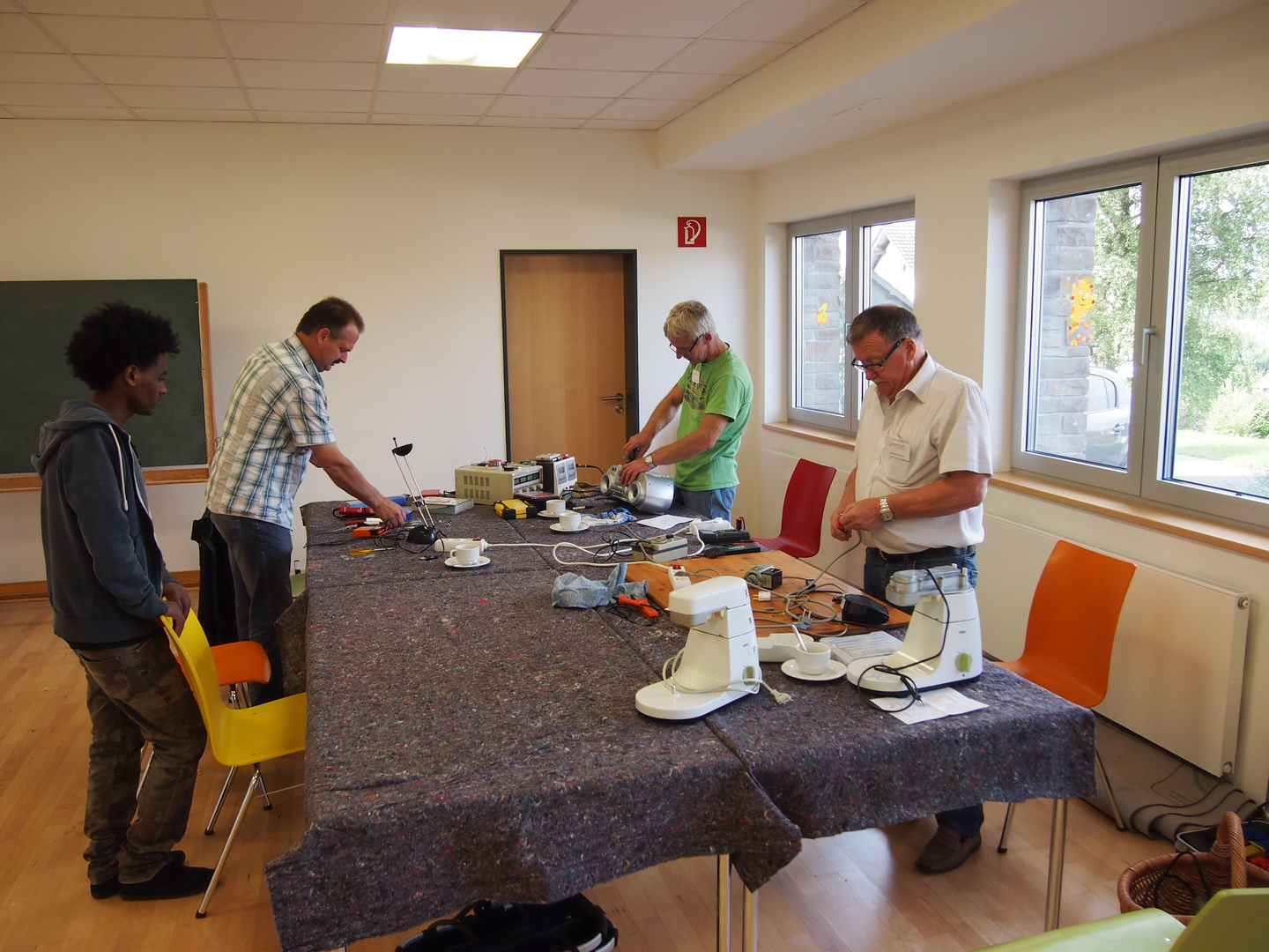 Besucher bringen beschädigte Gegenstände von zu Hause mit. Im Repair Café machen sie sich gemeinsam mit einem Fachmann oder einer Fachfrau an die Arbeit. Man kann dort immer eine Menge lernen. Wer nichts zu reparieren hat, nimmt sich eine Tasse Kaffee oder Tee oder hilft jemand anderem bei der Reparatur. Hier finden Sie weitere Informationen …
