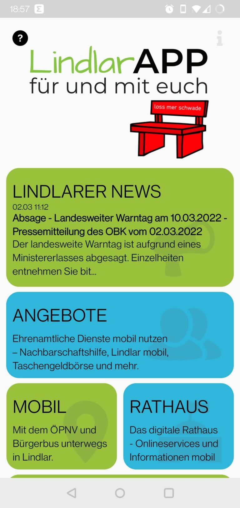 Die App für Lindlarer Bürger*innen | Mit der LindlarApp bieten wir allen Lindlarer*innen eine leicht bedienbare mobile Möglichkeit, sich über aktuelle Termine und Neuigkeiten zu informieren, ehrenamtlichen Services zu buchen, Haltestellen und Busfahrzeiten einzusehen und die Bürgerservices des Rathaus zu nutzen.